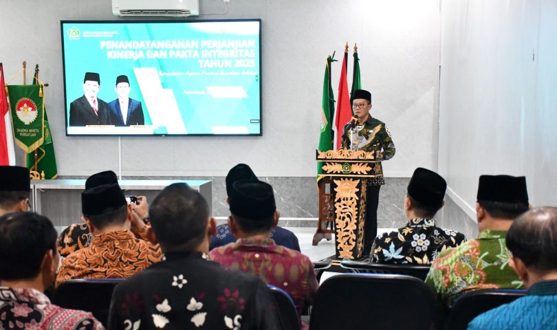 Seluruh pejabat eselon III di lingkungan Kementerian Agama Provinsi Sumatera Selatan menandatangani Pakta Integritas dan Perjanjian Kinerja (Perkin) tahun 2025. Kegiatan tersebut digelar di Aula Kantor Wilayah Kementerian Agama Provinsi Sumatera Selatan, Kamis (09/01/2025). Penandatanganan pakta integritas dan perjanjian kinerja ini sebagai bentuk komitmen dalam melaksanakan pekerjaan sebagai Aparatur Sipil Negara (ASN).